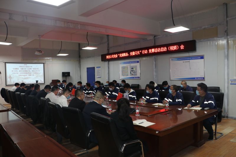 陕西分公司班子成员、机关各部室负责人在曹家巷会场参会;各项目部管理人员通过视频参加会议。